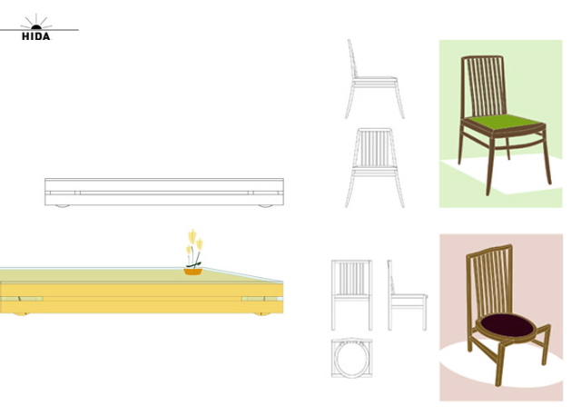 fresh ideas for traditional furniture, Hida Sangyo internship, 2001